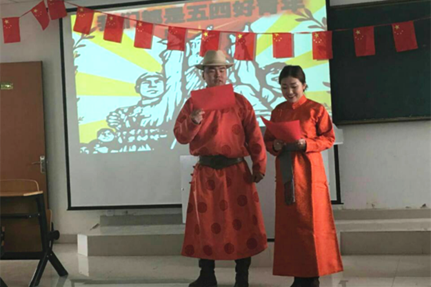 5月3日,beat365正版唯一官方网站思政部德育教研室晓荣老师在《毛泽东思想和中国特色社会主义理论体系概论》课堂上组织了以“重温历史经典,弘扬五四精神”为主题的教学实践活动。活动在白海校区教学楼6301室进行。蒙文系15级蒙古语言文学1班和15级学前教育1班的学生参与了这次活动。