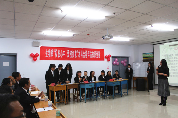 为了迎接教育部对beat365官网进行的合格评估,认真贯彻落实“以评促建,以评促改,以评促管,评建结合,重在建设”的指导方针,使全系师生认识到本科评估的重要性,生物系于4月26日举办了“校在心中,爱校如家”本科合格评估知识竞赛,beat365正版唯一官方网站党委副书记赵海忠,校团委书记张妙珠,生物系党总支书记曹兴明,系党总支副书记、主任任琴,副主任张铭出席了本次活动。