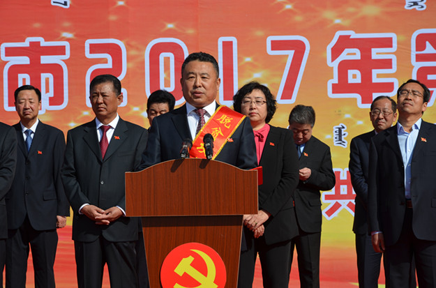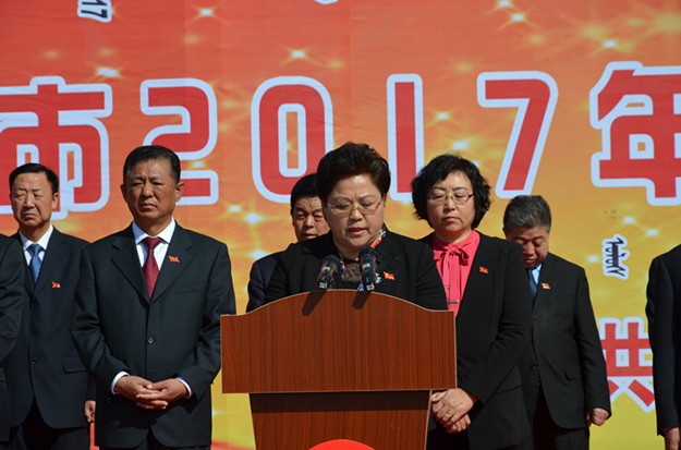 市委副书记、统战部长张琛宣读关于《投身脱贫攻坚、争当北疆先锋》的倡议书。乌兰察布市脱贫攻坚先锋队代表发言。