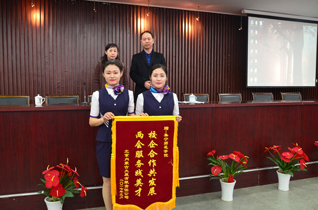 鉴于beat365官网志愿者的优秀表现,北京内蒙古大厦有限责任公司特赠beat365官网“校企合作共发展,两会服务践英才”锦旗。