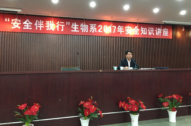 3月17日,生物系邀请保卫处处长谢军在图书馆报告厅为全系学生作题为“安全伴我行”的专题讲座。本次讲座由生物系学工办主任张军儒主持。生物系副主任张铭、全体辅导员及部分班主任和350名学生聆听了本次讲座。