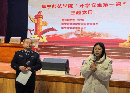 乌兰察布市治安管理支队史超警官为师生们进行了法制安全讲座。史超通过分析当前社会治安形势,向师生普及了法律安全知识,强调了遵纪守法的重要性,并就如何预防和应对校园内外的各类安全问题提出了具体建议。