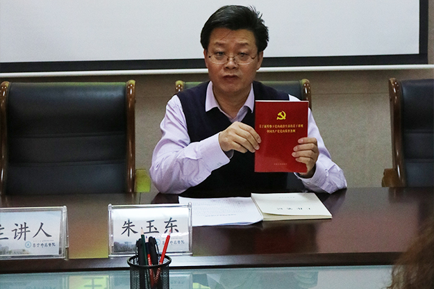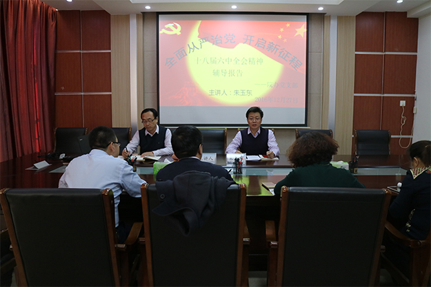 12月27日,校办党支部举办党课学习活动,校长朱玉东以“全面从严治党开启新征程”为主题对十八届六中全会精神作了专题学习辅导。