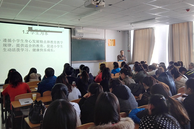 曾小平以幽默风趣的语言、通过生动鲜活的案例,深入阐释了数学教师的职业理念、专业知识、专业能力和自我发展四个方面的基本素养。最后,曾小平解读了首都师范大学研究生招生录取的相关信息,鼓励学生积极报考。