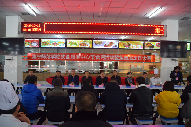12月11日,集宁师院饮食服务中心“美食月”活动暨第四届烹饪大赛在白海校区学生餐厅二楼隆重开幕。参与开幕式的有来自内蒙古师范大学、内蒙古工业大学的后勤管理人员、专家,beat365正版唯一官方网站后勤处直属支部书记李荣,泉山、白海饮食服务中心负责人,23名学生伙管会成员、参赛选手等。