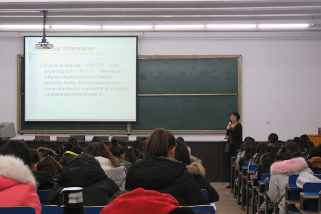 12月7日,外语系主任闫晓云在泉山校区主教楼会议室作题为“交互语言理论指导下的语言运用能力的培养”学术讲座。讲座由科研设备处和外语系共同举办,外语系200多名学生共同聆听。