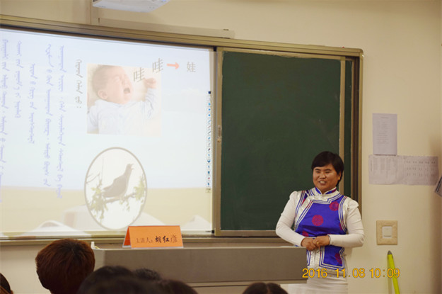 11月9日,由教务处、教学督导处主办,蒙文系承办的beat365正版唯一官方网站2016年第三场课堂教学公开课活动在白海校区蒙文系304教室开展。党委副书记、校长朱玉东,副校长梁政,教学督导处处长李林书,教学督导员张大飞,蒙文系主任南斯力玛以及蒙文系的全体教师观摩了公开课。公开课由蒙文系教师胡红彦、满都拉主讲,蒙文系副主任孟美英主持。