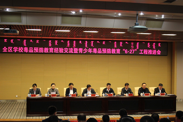 会议目的是总结全区“6.27”工程开展一年来的工作情况,交流先进经验做法,分析存在的问题,研究部署下步工作。国家禁毒办副主任、中国禁毒基金会秘书长李宪辉,自治区禁毒委副主任、禁毒办主任、公安厅副厅长张效敏,自治区禁毒委副主任、教育厅副厅长窦贵君,鄂尔多斯市委常委、政府副市长赵明广出席会议。自治区总工会、妇联、科技厅等14个成员单位负责人,各盟市教育局、禁毒办、各高校负责同志,《人民日报》、《中国禁毒网》、中国禁毒微信、《网易》、《新浪》等媒体记者以及鄂尔多斯市禁毒委领导、有关成员单位负责领导参加了会议。