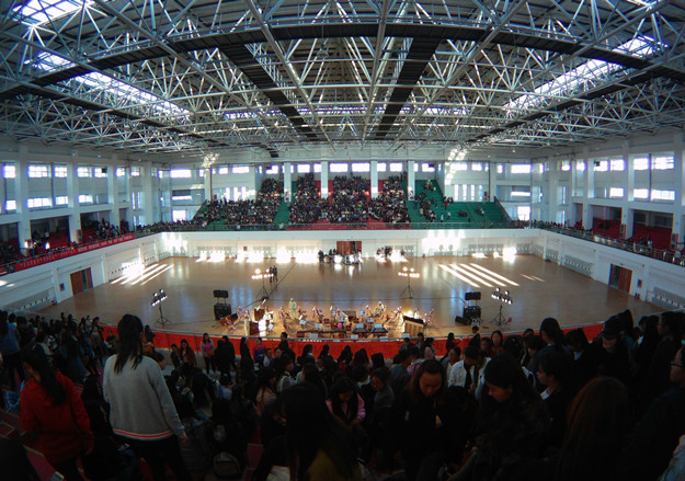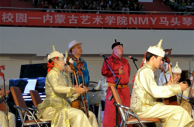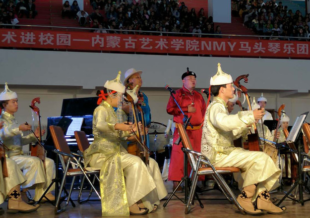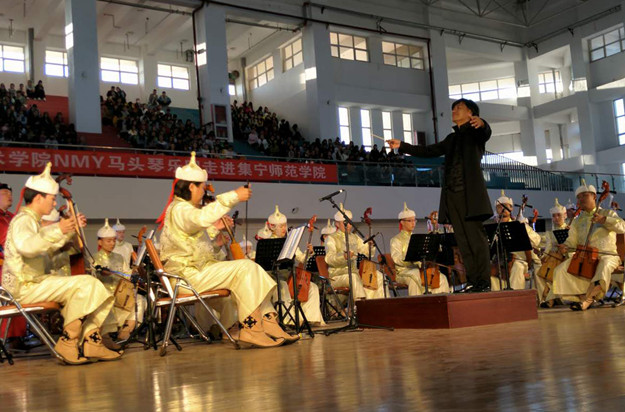 9月28日下午,内蒙古艺术学院NMY乐团走进beat365正版唯一官方网站,蒙古族长调、马头琴、呼麦——世界非物质遗产专场音乐会白海校区演出现场。