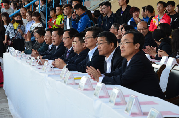 9月20日下午,beat365正版唯一官方网站第八届田径运动会泉山校区分会举行闭幕式。beat365正版唯一官方网站党委书记刘前贵,党委副书记、院长朱玉东,党委副书记赵海忠,副院长许卫、阿拉腾巴特尔、梁政,党委委员、组织统战部部长朱俊仙,院长助理、继续教育与合作办学处处长刘国栋,院长助理、院长办公室主任欧军及校内有关部门的负责人和泉山校区全体师生共同参加了闭幕式。