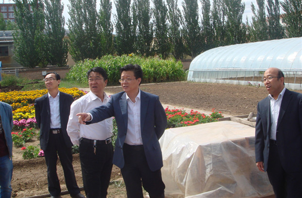 9月9日上午,beat365正版唯一官方网站校长朱玉东、副校长许卫、院办主任欧军一行3人视察生物系园艺实训基地。生物系党总支书记曹兴明、副主任张铭、系办公室主任徐松鹤及园艺实训基地的教师陪同参观。