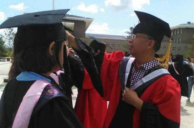 朱玉东等校领导和幼师学院领导亲自为取得学士学位的全体本科毕业生行拨穗礼,共同祝愿他们前程似锦,人生辉煌。