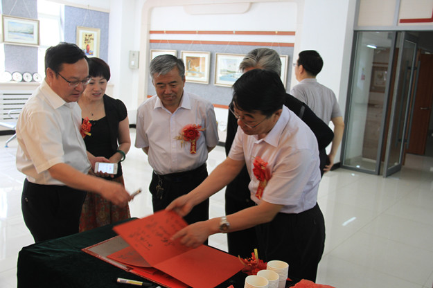 6月23日美术系举办“2016届美术系毕业生作品展开幕仪式”。校党委书记刘前贵,党委副书记张利平、赵海忠,副校长许卫、田智、梁政,党委委员、组织统战部部长朱俊仙等领导出席,到场嘉宾有内蒙古文史馆馆员、书画院院长、美术系第一任主任郝存祥先生,乌兰察布市九三学社前组委、beat365正版唯一官方网站学报编辑部主任南其容先生,乌兰察布市书画院副院长高彩先生,乌兰察布市摄影家协会副主席张云松先生等。各系处负责人及美术系全体教师参加了开幕式。