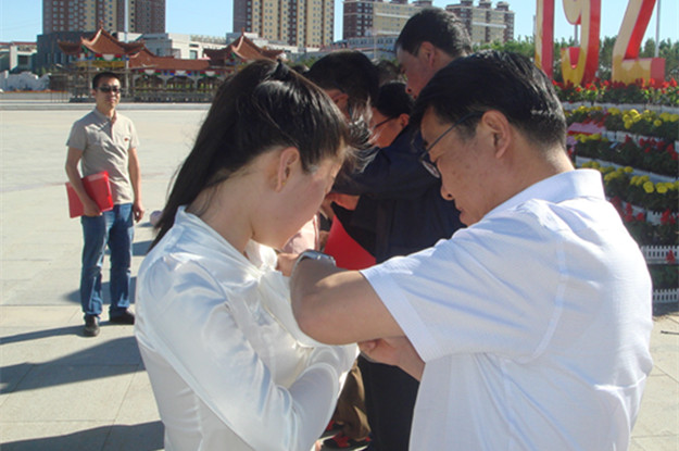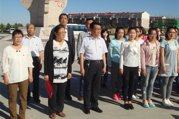 为回顾党的光辉历史,讴歌党的丰功伟绩,激励广大党员牢记职责使命,更好的发挥党员的先锋模范作用,6月7日下午,生物系党总支在集宁战役纪念馆广场隆重举行预备党员入党宣誓仪式,为中国共产党成立95年献上贺礼。党委委员、副校长许卫,生物系党总支书记曹兴明,生物系党总支副书记、主任任琴,生物系副主任张铭参加了仪式。