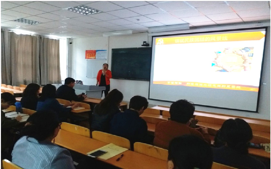 张爱梅以“民族平等,民族团结,各民族共同繁荣发展”为主线,从我国各民族的基本情况和基本政策、内蒙古自治区在全国发展当中的定位、以民族团结力量打造祖国北疆亮丽风景线三个方面作了讲解。讲座中心思想,观点鲜明,内容丰富,例证详实。