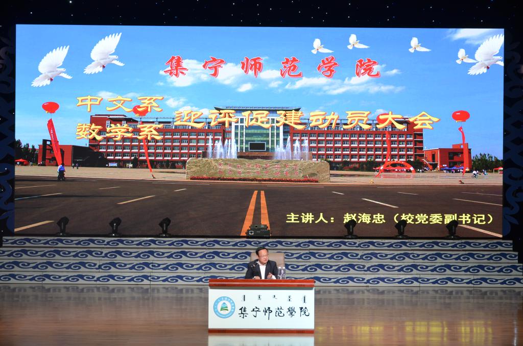 为迎接教育部专家进驻beat365官网进行本科教学工作合格评估,让同学们自觉以主人翁的责任感和使命感参与到评估之中,9月14日,党委副书记赵海忠在泉山校区为他所联系的中文系数学系作迎评促建动员报告。中文系党总支书记张来锁主持动员会,中文系、数学系全体师生参加了动员会。