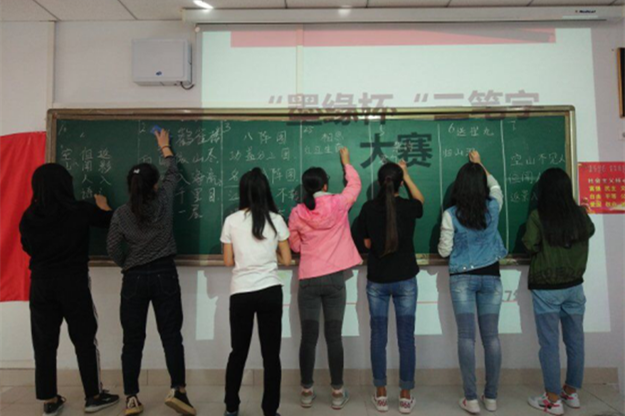 在粉笔字比赛中,同学们一丝不苟,书写熟练流畅、轻快自如,规范、整洁,整体版面设计美观,实用性与艺术性完美结合。钢笔字笔画清楚、字距匀称,间架结构合理;毛笔字起笔行笔收笔清楚,字体结构合理、端正,字形大小适中、点画之间互相呼应。一幅幅作品映入眼帘,它们赏心悦目,它们各具特色:有的刚劲有力,有的潇洒飘逸,有的大方得体,有的隽美秀气,整个竞赛异彩纷呈,佳作频出。