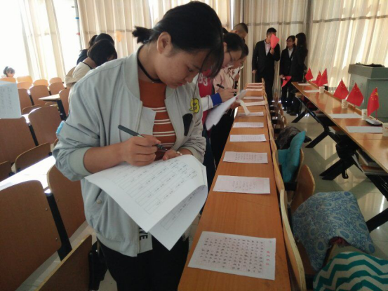 最后,团总支书记乌日娜对比赛作了点评。本次三笔字大赛的举办不仅陶冶了同学们的情操,丰富了同学们的校园文化生活,而且为具有这方面爱好的同学搭建了一个展示自我的平台,提升了同学们的专业素质,传承、弘扬了中华优秀传统文化。