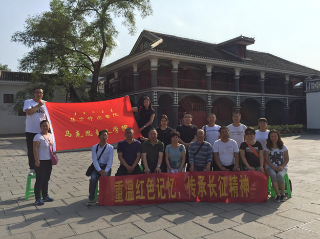 10月7日—15日,马克思主义学院教师一行赴贵州—遵义进行了为期9天的红色实践研修活动。此次活动由现场教学、情景教学、体验式教学三部分组成,研修地点主要包括猴场会议会址、息烽集中营陈列馆、遵义会议会址、娄山关战斗遗址、苟坝会议会址、毛泽东小道、红色之家、四渡赤水纪念馆、红军三渡渡口、血色猫洞等地。