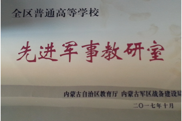 为促进全区高校军事课(军事训练技能课与军事理论课)教学改革,表彰先进。近日,在自治区教育厅、内蒙古军区战备局举行的“第六期全区军事教师培训”会议上,学校荣获全区普通高等学校“先进军事教研室”奖。