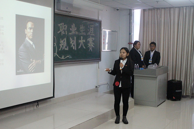 比赛分个人职业生涯设计作品、现场发挥和现场问答三个环节,以自我分析、职业分析以及短、中、长期的目标设定和实施四个方面为构架展示其职业生涯的规划。评委根据选手展示的PPT内容以及选手的讲解从目标实现、职业描述、职业发展前景、通过实际的案例操作进行提问。