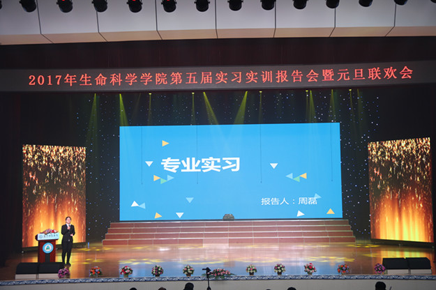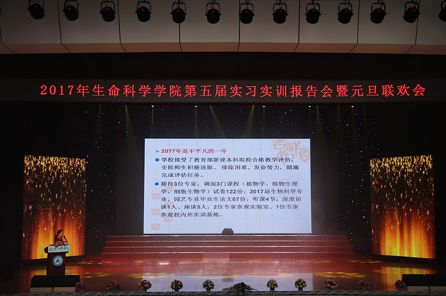 为提高学生对专业的了解,更好地将理论知识运用到实践中,同时为庆祝2018年的来临,生命科学学院于12月29日在报告厅举办了第六届实习实训报告会暨元旦联欢会。出席本次报告会的嘉宾有教学督导处处长李林书、学生处处长兰立新、团委书记张妙珠及生命科学学院全体教师和学生。