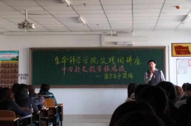 1月5日,生命科学学院在逸夫楼举办“中学校长教学经验谈”实践周讲座。讲座邀请集宁五中副校长樊瑞担任主讲。参加讲座的有2015级、2016级生物科学专业全体学生及指导教师。