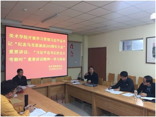 为学习贯彻习近平总书记在北大考察时和纪念马克思诞辰200周年大会上的重要讲话精神,美术学院党总支于5月10日召开全院师生党员学习活动。学校党委委员、联系美术学院工作的副校长梁政教授亲临活动现场,参加和指导学习活动。