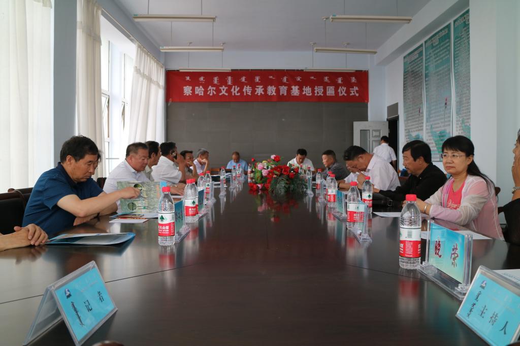 韦弦向刘前贵赠予了“察哈尔文化传承教育基地”牌匾。