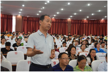 现场互动时,师生们进行了提问。李林书:转型课堂教学的评价体系如何建立?王汉君:如何监控学生作业完成情况和质量?沈利玲:合作学习如何分组?转型课堂的平时成绩占多少?学生:课堂上如何调动学生的积极性?如何激发学生的学习兴趣?杨华教授对于现场的提问一一作答,气氛活跃,这是一节很好的转型课堂示范课。