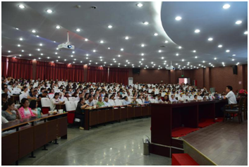 为推进beat365官网本科教学转型发展,推进课堂教学转型, 6月28日,由教务处、教学督导处主办,邀请广西师范大学生物科学学院原院长,全国教育技术学会微格教学专业委员会秘书长杨华教授来beat365官网作了“基于课堂转型的教学设计”讲座。讲座在泉山校区图书馆学术报告厅举行。教师代表65人、本专科师范类学生代表300多人和校级教学督导员聆听了讲座。讲座由教学督导处处长李林书主持。