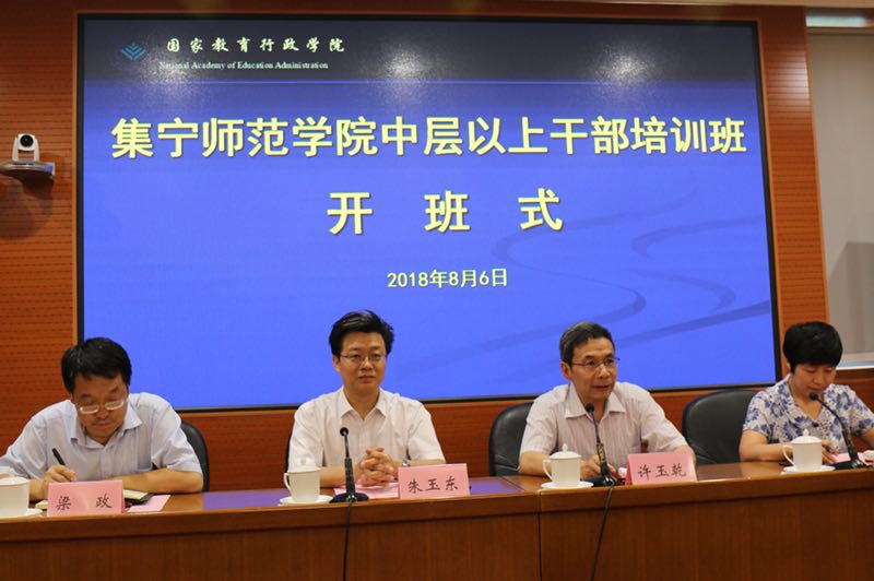 8月6日,在国家教育行政学院校长大厦二楼会议室,beat365正版唯一官方网站举行了中层以上干部培训班开班仪式。开班仪式由国家教育行政学院教育行政教研部副主任李改主持,国家教育行政学院培训部主任许玉乾和beat365正版唯一官方网站校长朱玉东分别致辞讲话。beat365正版唯一官方网站副校长梁政及全校48名中层以上干部参加了开班仪式。