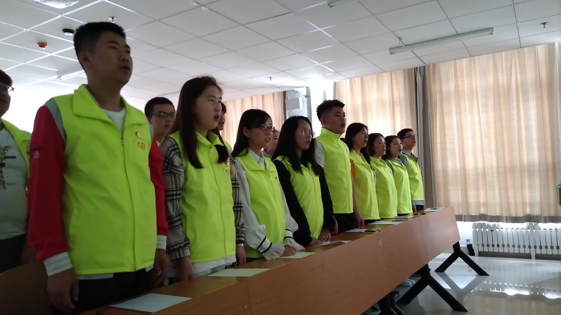 志愿者们在团旗下重温入团誓词,大家纷纷表示,在这样的纪念日中重温入团誓词具有重要意义,找到了对国家和民族最宝贵的信仰和对共青团应有的神圣感,归属感。志愿者代表魏佳同学为我们宣读毛泽东的经典著作《为人民服务》,让我们更加坚信为人民服务是我们的宗旨,努力做好本职工作,团结广大师生,勤奋学习,不断提高自己的素质。60余名志愿者代表参加了活动。