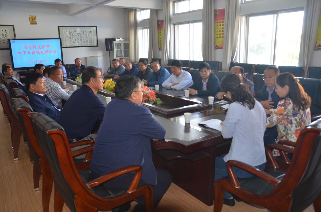 校友王智广(外语系毕业)主持座谈会,李俊向与会校友表达了母校对校友们的问候和感谢,说明了召开座谈会的意义,莎仁格日书记勒介绍了学校发展的概况。校友们回顾了求学、工作的经历,研讨了教育、教学的具体问题,表达了对母校培育、关注的感谢。