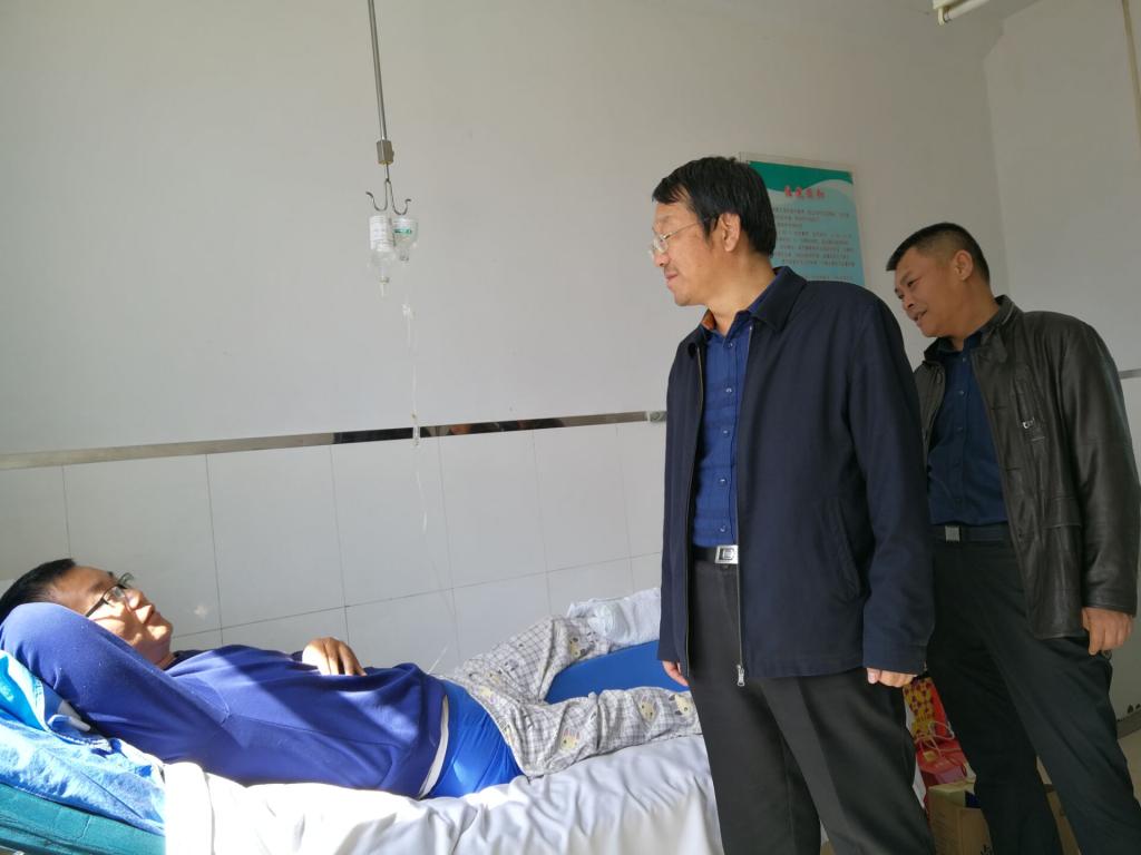 9月24日中秋节,副校长粱政、工会主席李耀、人事处处长李景杰到医专附属医院看望了因伤住院的教师盛团珍,代表学校党委、行政向他致以节日的祝福和亲切的慰问,并了解关心他的身体状况及家庭生活情况,叮嘱他积极治疗,祝愿他早日康复。