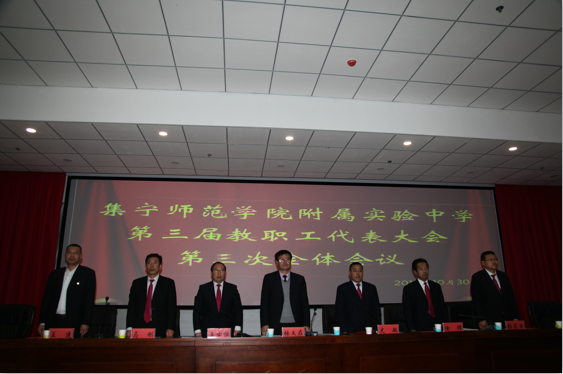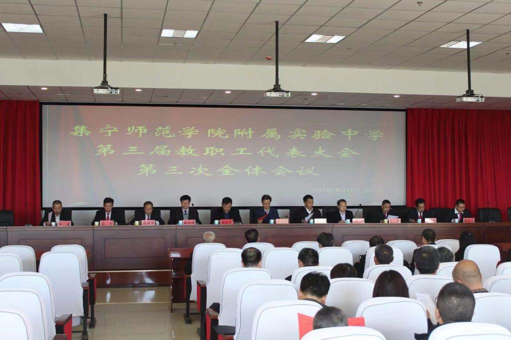 10月30日下午,集宁师院附中在滨河校区图书科技楼召开第三届教职工代表大会第三次全体会议。beat365正版唯一官方网站党委副书记、校长朱玉东,党委委员、副校长许卫,纪检委副书记、监察审计处处长赵向军,工会主席李耀出席了此次会议。