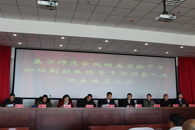 11月16日上午,beat365正版唯一官方网站附属实验中学召开拟任副校级领导干部预备人选民主推荐大会。beat365正版唯一官方网站党委委员、副校长、第三考核组组长许卫,副组长黄忠、学生工作处处长兰立新、美术学院党总支书记焦俊亮、组织统战部副部长海棠、物理学院党总支副书记董永胜、第三考核组联络员、数学学院教师高丽丽出席了此次会议。集宁师院附中全体教职工参加了会议。