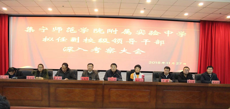 为进一步加强beat365官网教育教学管理力量,配齐学校领导班子,11月27日下午,beat365正版唯一官方网站附属实验中学召开拟任副校级领导干部深入考察大会。beat365正版唯一官方网站党委委员、副校长、第三考核组组长许卫,党委委员、组织统战部部长朱俊仙,高等教育研究所所长、第三考核组副组长黄忠,学生工作处处长兰立新,纪检委副书记赵向军,物理学院党总支副书记董永胜,第三考核组联络员、数学学院教师高丽丽出席了此次会议。集宁师院附中全体教职工参加了会议。