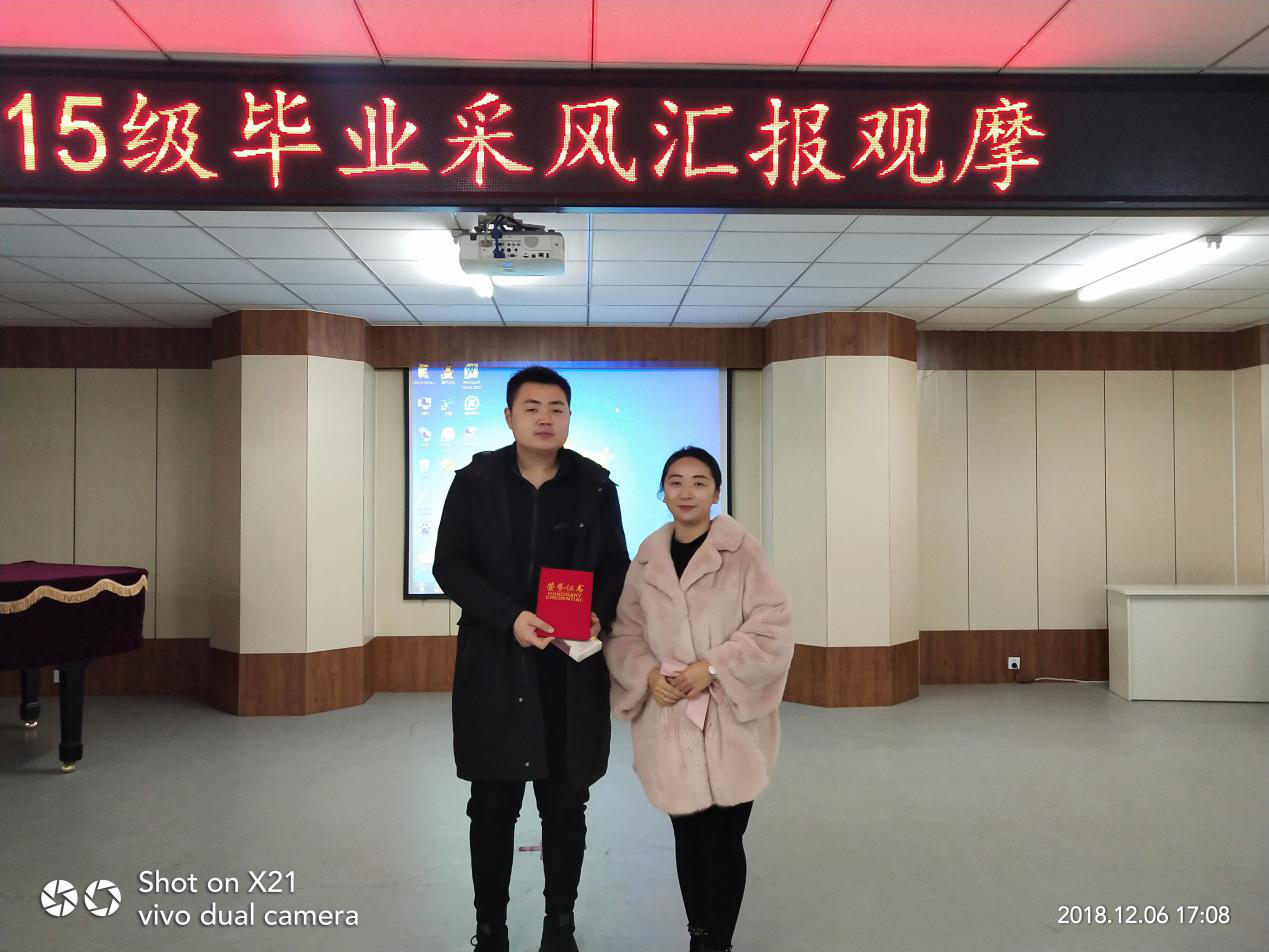 通过一个月的采风工作,学生根据自己的专业,分别深入到学校、社区、文艺团体、民间艺人家中,对学校音乐教育的现状、社区文化、民间艺术等方面进行了详细调查。根据采风内容,每一位同学撰写2500字左右的采风报告和录制50分钟左右的采风录像视频,并于12月6日下午进行了毕业采风观摩汇报,并对采风报告优秀成果进行了表彰。2016、2017、2018级全体学生全程观摩了此次汇报活动。通过观摩汇报,不仅提高了学生分析问题的能力,同时也为2019届预毕业生下一步以社会实践完成毕业论文的工作奠定了基础。