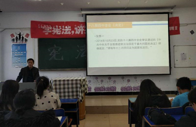 12月4日是第五个国家宪法日,设立国家宪法日的目的,不仅是纪念中华人民共和国宪法的诞生,更重要的是为了增强全社会的宪法意识,弘扬宪法精神,加强宪法实施,全面推进依法治国,建设社会主义法治国家。为迎接第五个国家宪法日的到来,政法与历史文化学院特举办“学宪法 讲宪法”系列活动。