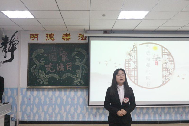 12月4日,学院利用早自习时间,组织各班学生进行宪法晨读活动;为营造“学宪法 讲宪法”的浓厚氛围,激发广大师生参与“学宪法 讲宪法”系列活动的积极性、主动性,政法与历史文化学院通过海报、宣传栏等形式进行了宣传并组织师生进行现场签名活动;学院还举行了“学宪法 讲宪法”演讲比赛决赛。