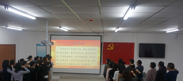 会上,教育科学学院教工党支部宣传委员郭瑞峰带领全体师生党员重温了入党誓词。