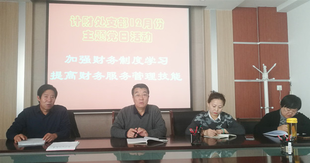 12月19日下午,计划财务处直属党支部在泉山校区行政楼三楼会议室召开以“加强财务制度学习,提高财务服务管理技能”为主题的党日活动。会议由支部书记院丕文主持,党委委员、副校长许卫参加了此次党日活动并作发言。计财处全体在职职工参加了活动并进行了集体培训学习。