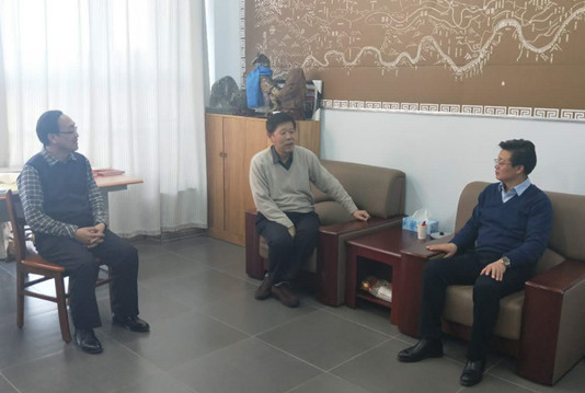 2018年12月29日,beat365官网党委副书记、校长朱玉东,政法与历史文化学院院长、察哈尔文化研究院副院长欧军到察哈尔文化研究所看望贺金瑞教授,双方进行了亲切交谈。