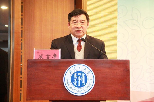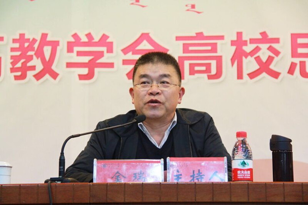内蒙古高教学会高校思想政治教育专业委员会第八届理事会会长、内蒙古大学党委书记朱炳文作工作报告。