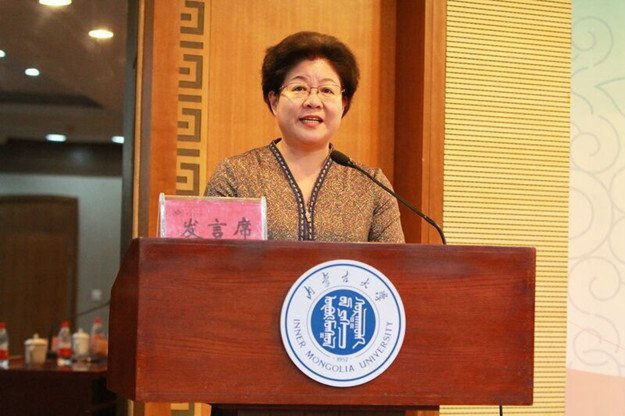 新当选的内蒙古高教学会高校思想政治教育专业委员会第九届理事会会长、内蒙古师范大学党委书记黄雅丽讲话。