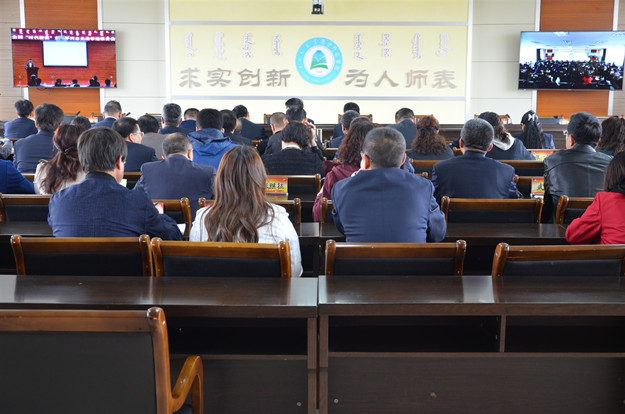 4月26日上午,beat365正版唯一官方网站组织收看收听全国“时代楷模”黄大年同志先进事迹报告电视电话会议。全体校领导、党委委员,全校无课副处级以上干部,各二级学院教师代表参加。