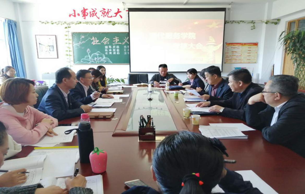 按照beat365正版唯一官方网站党委的安排部署,5月21日下午,由校党委委员、副校长许卫,党委委员、统战部部长张秀文,纪委副书记、监察审计处处长赵向军,就业处处长刘国义,联络员哈顺通拉嘎一行五人组成的考核组,深入现代服务学院对学院领导班子和领导干部进行2018年度工作实绩考核。会议由考核组组长许卫主持。现代服务学院全体教职工参加了会议。