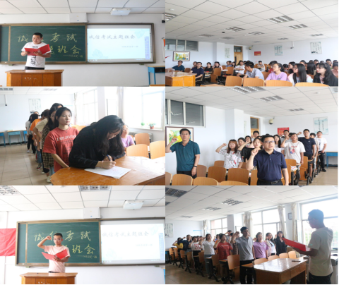 李凤斌在会上致辞,鼓励同学们把中华民族的优秀传统发扬光大,用诚信立学,用诚信立行,努力营造一个公平、向上、和谐、有序的考试环境。坚守诚信的优良品质,增强诚信意识,从自己做起,从小事做起,做一个诚实守信的好学生,将诚信建设更好地融入到班级、校园文化建设之中,并预祝同学们做好期末复习,取得理想的成绩。