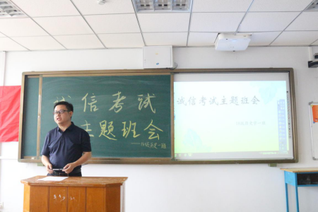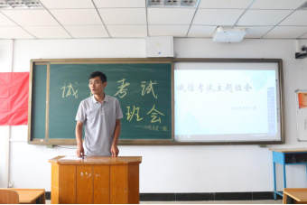 班主任田博在会上向同学们讲解了考试作弊的危害并对上学期期末同学们在考试中的诚信表现提出表扬。强调考试作弊践踏了诚信理念,加剧了信用危机,助长了不劳而获、投机取巧的心理,进而造成不正当竞争的形成,影响同学们的学习积极性,干扰良好学风的形成,严重阻碍教育的健康发展。鼓励同学们以积极向上的心态迎接期末考试。